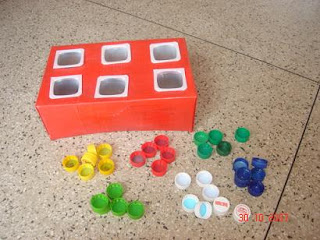Brinquedo feito para crianças de 2 até 4 anos, onde trabalhar com as cores,e muito mais, é só usar a imaginação.Ele foi feito com caixa de sapato e embalagens de iogurte.
